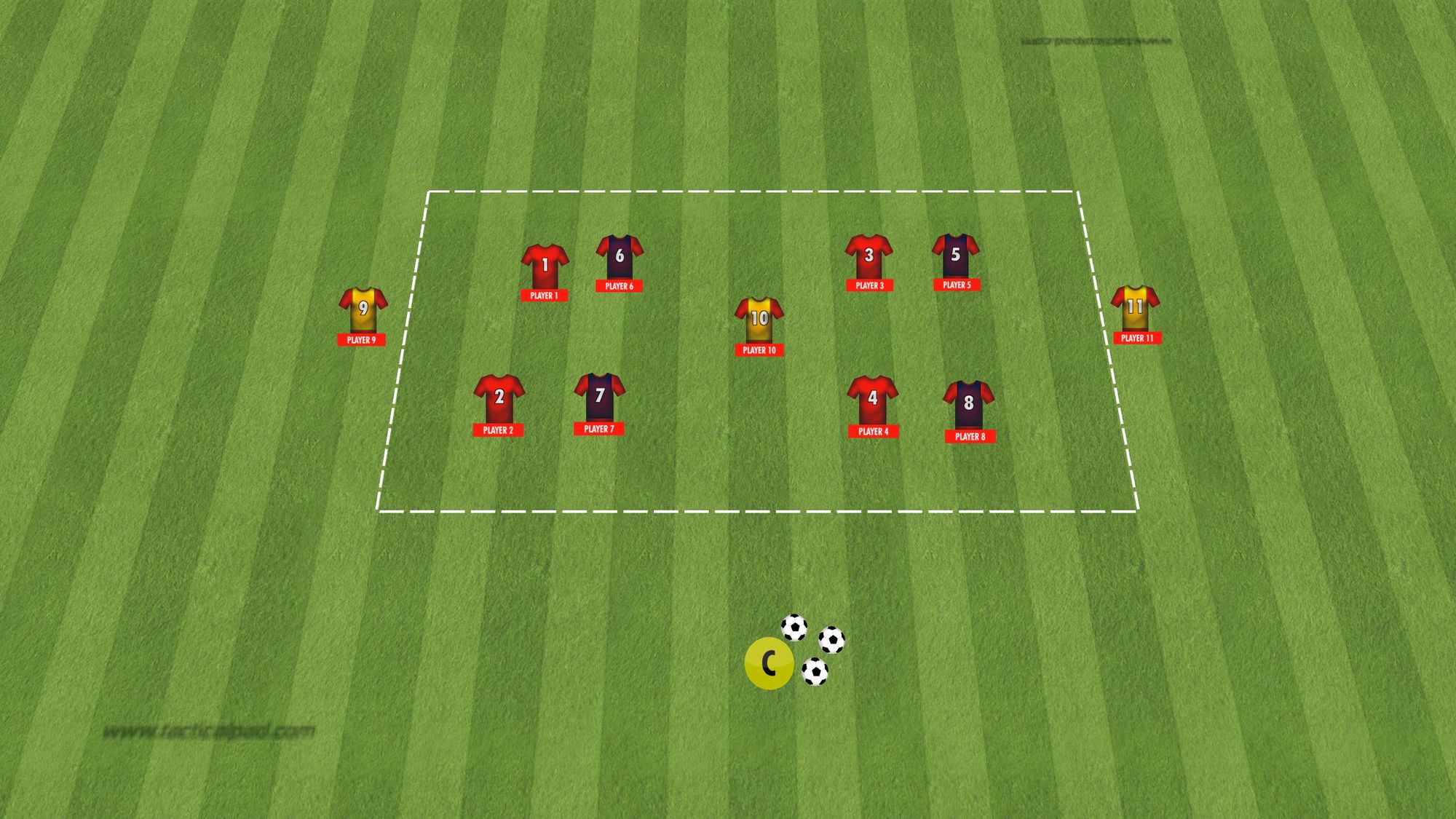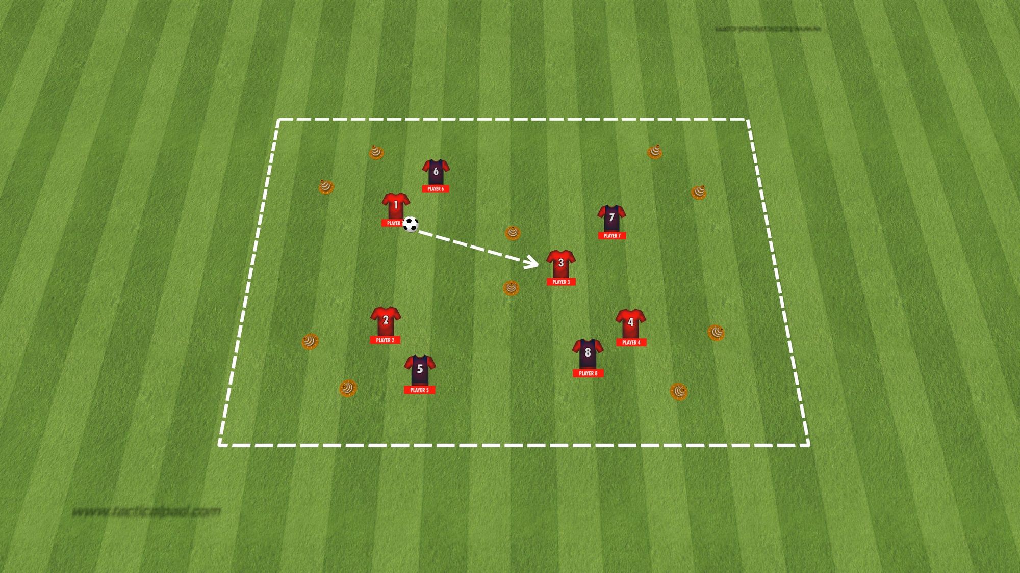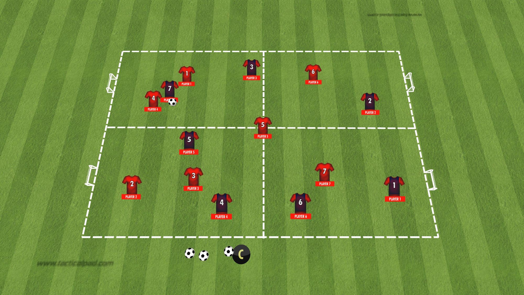 Passa genom grindarna Spela genom grindarna 3 mot 3 med fokus på passning medtagning Antal kroppsdelar i marken Teori: Anfallsspel – Speluppbyggnad Kvadrat och fotbollsfys Spelövning 7 mot 7 Speluppbyggnad Direkt återerövring Spel 11 mot 11 Speluppbyggnad direkt återerövring Kvadraten med fotbollsfys Spel i djupled Kontrollerad speluppbyggnad Teori – Speluppbyggnad och återerövring av bollen 1 2 3 … 7 Nästa →